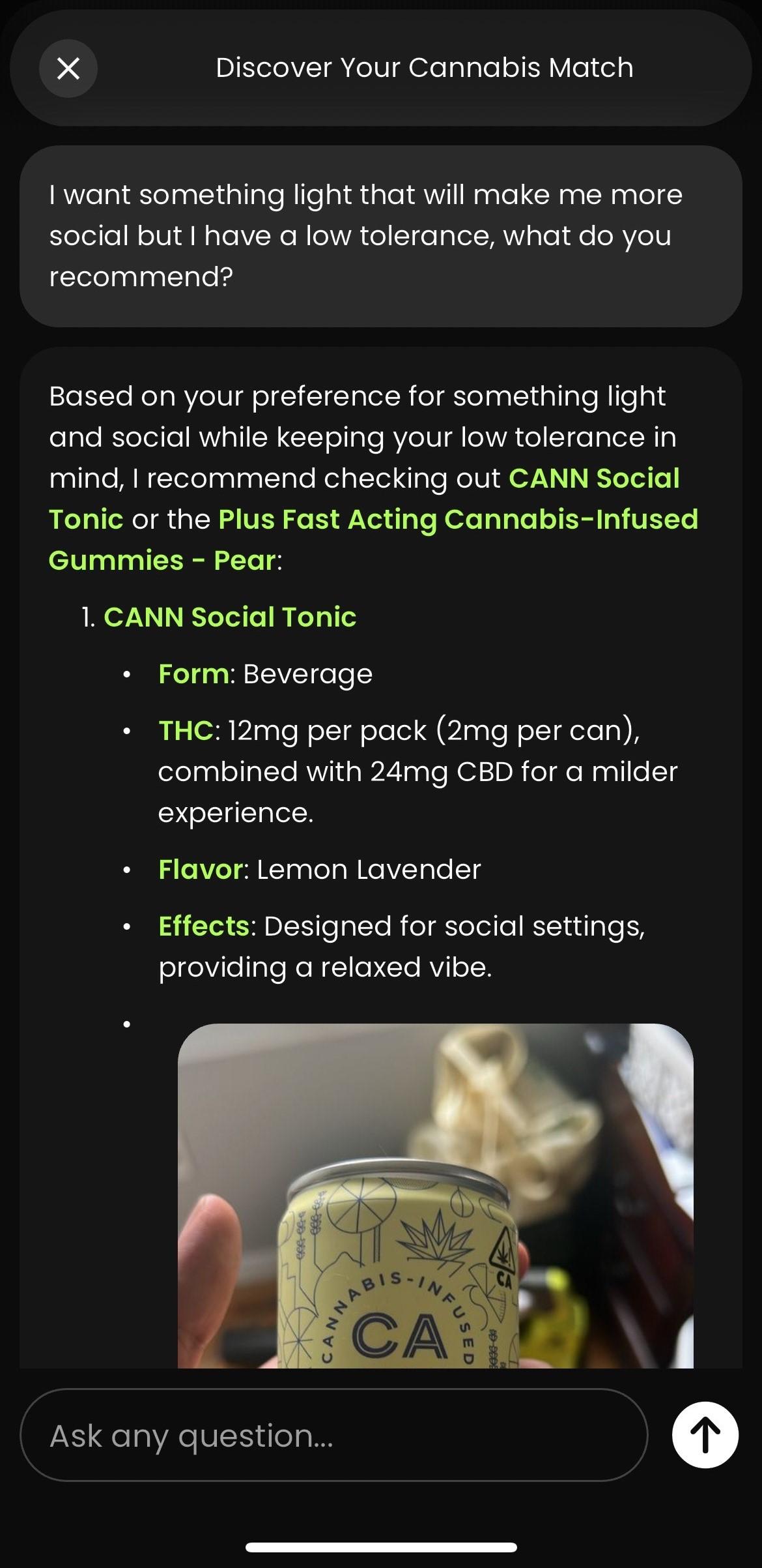 Now enter in Buddy: The Cannabis App. Buddy offers deeper insights than most of its Cannabis AI social counterparts. It provides a more comprehensive understanding of the product spectrum. With Buddy’s Insight feature, we’re moving from broad suggestions to a truly interactive, knowledge-driven experience that benefits both consumers and budtenders alike. Buddy’s AI delves into consumer feedback/reviews, cannabinoid profiles, and even user-specific factors and preferences, giving dispensary customers and home users the precise guidance they need for a top-tier cannabis experience. I think Buddy is the first company to directly solve this challenge of not only catering to the individual cannabis consumer anywhere they go but making it easy to use. Not everyone, not even a majority or people that consume their preferred products will take the time to learn everything and how cannabis interacts, not out of laziness, no, it’s because it’s dense and very complex!